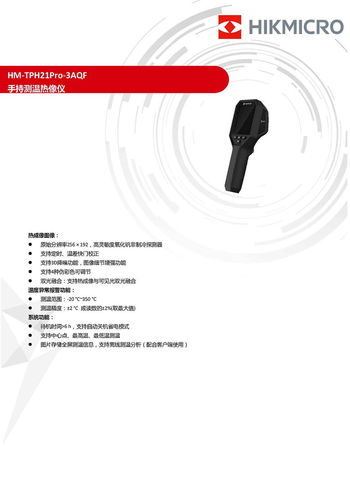 海康威視H21Pro手持測溫熱像儀功能強大、簡單易用,能對環(huán)境中高溫目標進行測溫,幫助現(xiàn)場人員快速排查故障,輔助決策,確保安全,是建筑、電氣、機械等有測溫需求領(lǐng)域的理想工具。設(shè)備采用 3.2"觸摸屏,配備了 256×192 紅外探測器,幫助您發(fā)現(xiàn)隱藏問題,使您能更迅速的做出關(guān)鍵決策。