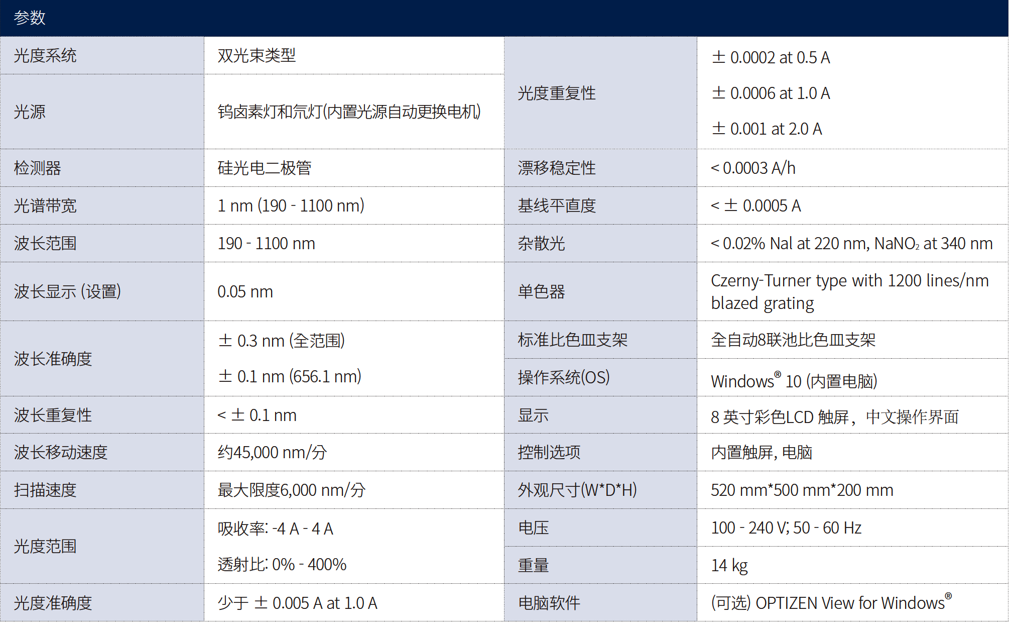 OPTIZEN Alpha采用**的設計, 是雙光束類型的紫外可見分光光度計。OPTIZEN Alpha在紫外和可見光范圍中測量樣品的各波長透射比或者吸光度來了解濃度或者純度等定量特征。該產品不僅可以用于一般分析實驗, 還可以用于專門的研究領域, 并保證**的測量和出色的重現性, 因此可被廣泛應用于環境, 生物技術, 化學等各個領域并提供可靠的實驗結果。