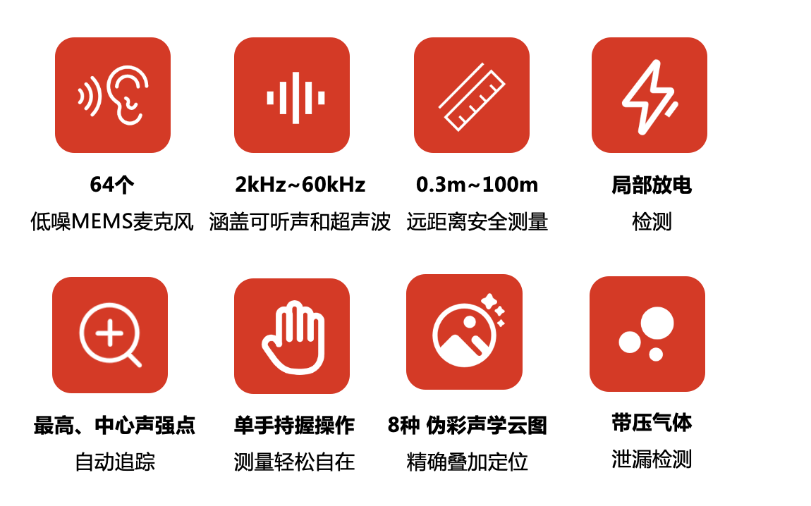 海康微影AP56系列聲波成像儀是一款專業(yè)的聲源定位產(chǎn)品。憑借64個低噪聲MEMS麥克風(fēng)和從2 kHz到60 kHz的可調(diào)帶寬范圍,AP56提供了一種簡單有效的方法來定位工業(yè)環(huán)境中的加壓空氣泄漏或檢測高壓系統(tǒng)中的局部放電。采用4.3英寸大液晶觸摸屏,數(shù)字圖片上顯示的結(jié)果,讓您快速找到問題的根源。操作距離可達(dá)100 m,確保您在距離內(nèi)進(jìn)行檢查。采用這種輕巧易用的工具,您可以發(fā)現(xiàn)潛在的風(fēng)險,減少故障排除,并節(jié)省設(shè)備故障和停機(jī)時間的額外成本。