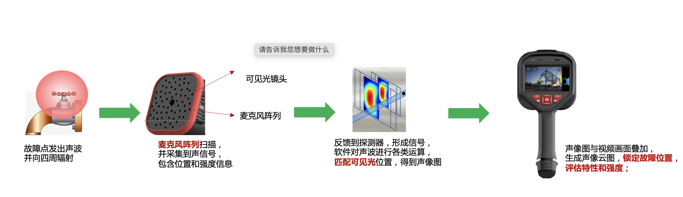 聲學(xué)成像原理 聲像儀——又名聲學(xué)相機(jī),是利用聲傳感器陣列測量一定范圍內(nèi)的聲場分布的專用設(shè)備。可用于測量物體發(fā)出的聲音的位置和聲音輻射的狀態(tài),將采集的聲音以彩色等高線圖譜的方式可視化呈現(xiàn)在屏幕上,有效的測量聲場分布,聲場圖與可見光的視頻圖像**疊加,形成類似于衛(wèi)星云圖的圖像,對故障位置,故障特性,強(qiáng)度進(jìn)行顯示。 ![]()